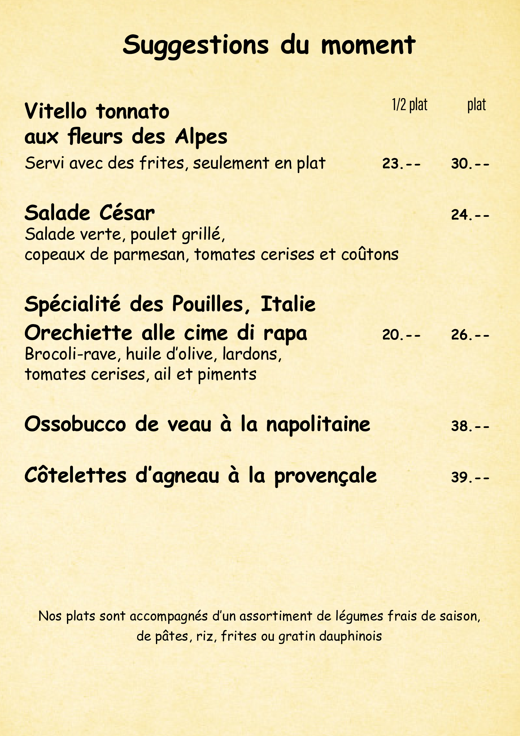 Pâtes, lasagnes ou risotto, pizzas artisanales, viandes ou poissons